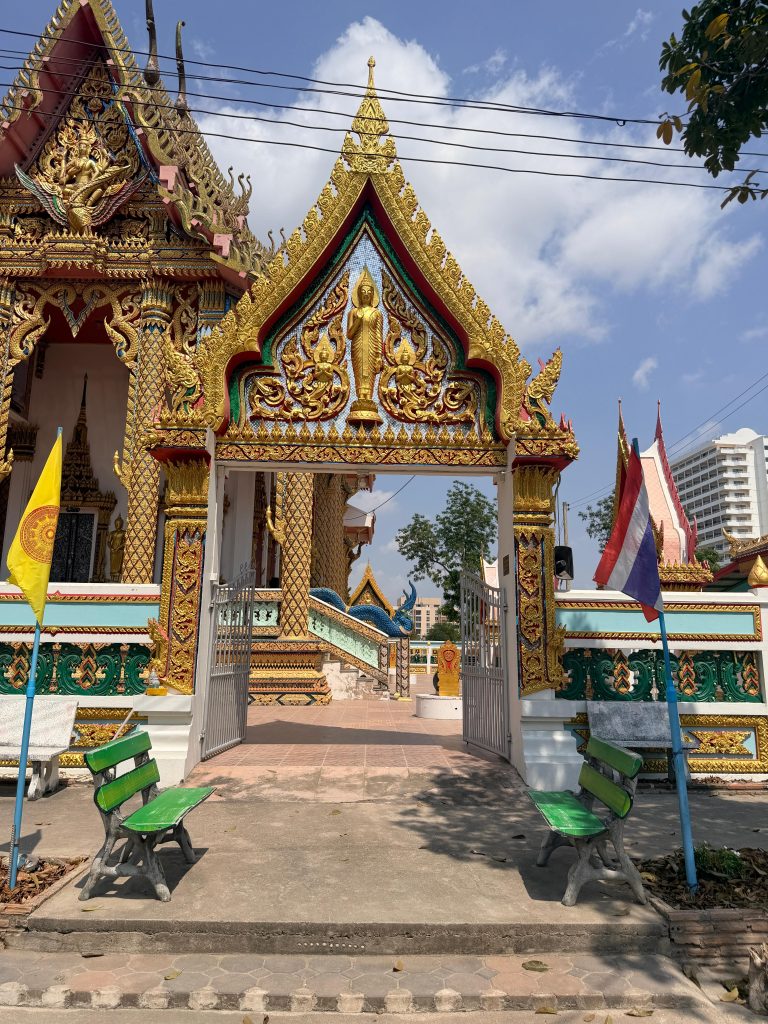In Jomtien lopen we op een ochtend naar een tempel.